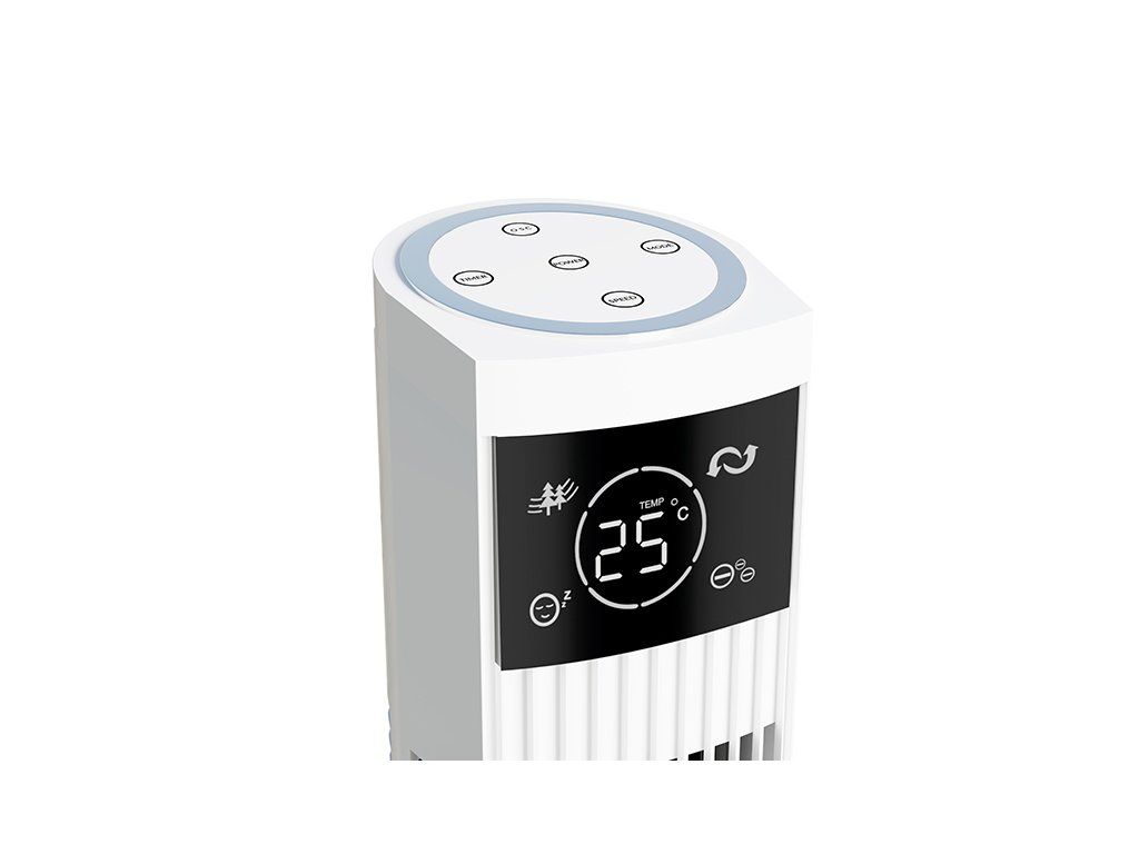 Ovládanie je možné priamo na dotykovom paneli alebo pomocou priloženého diaľkového ovládača. Nastavenie rýchlosti, režimu, oscilácie aj časovača je rýchle a intuitívne. Praktické držadlo uľahčuje prenášanie ventilátora medzi miestnosťami podľa aktuálnej potreby.