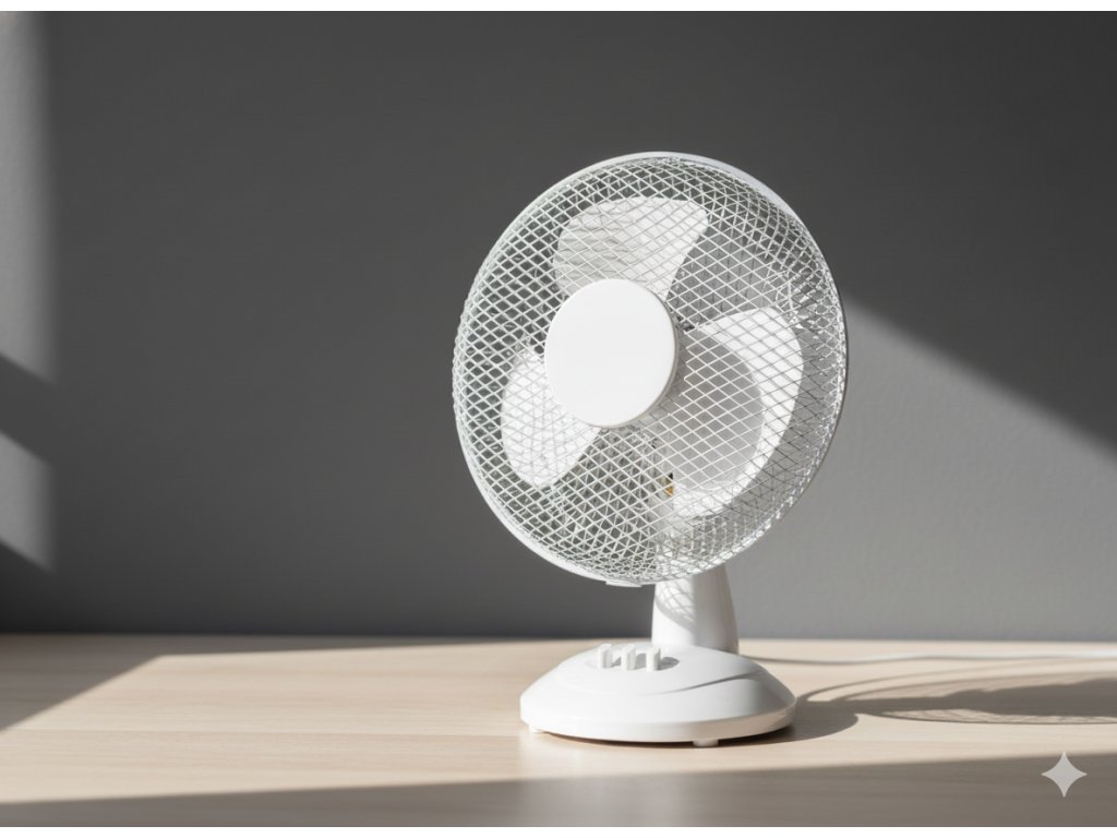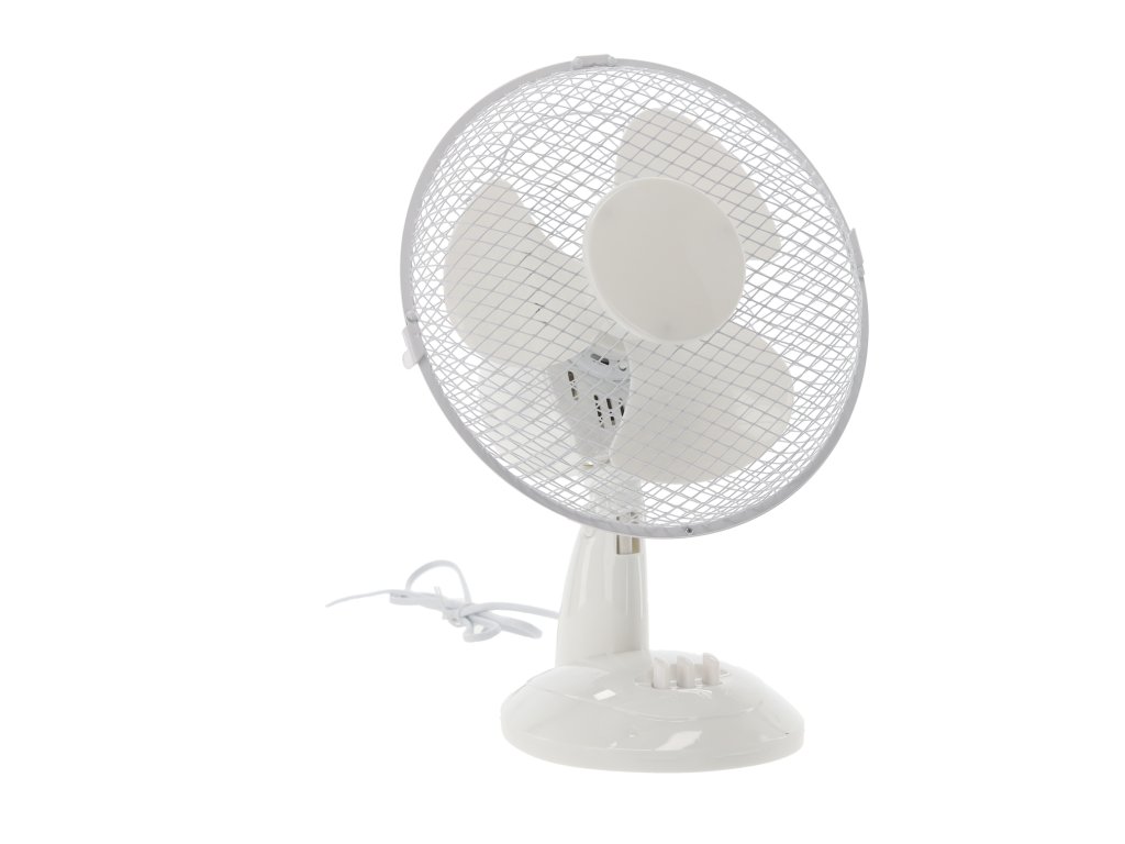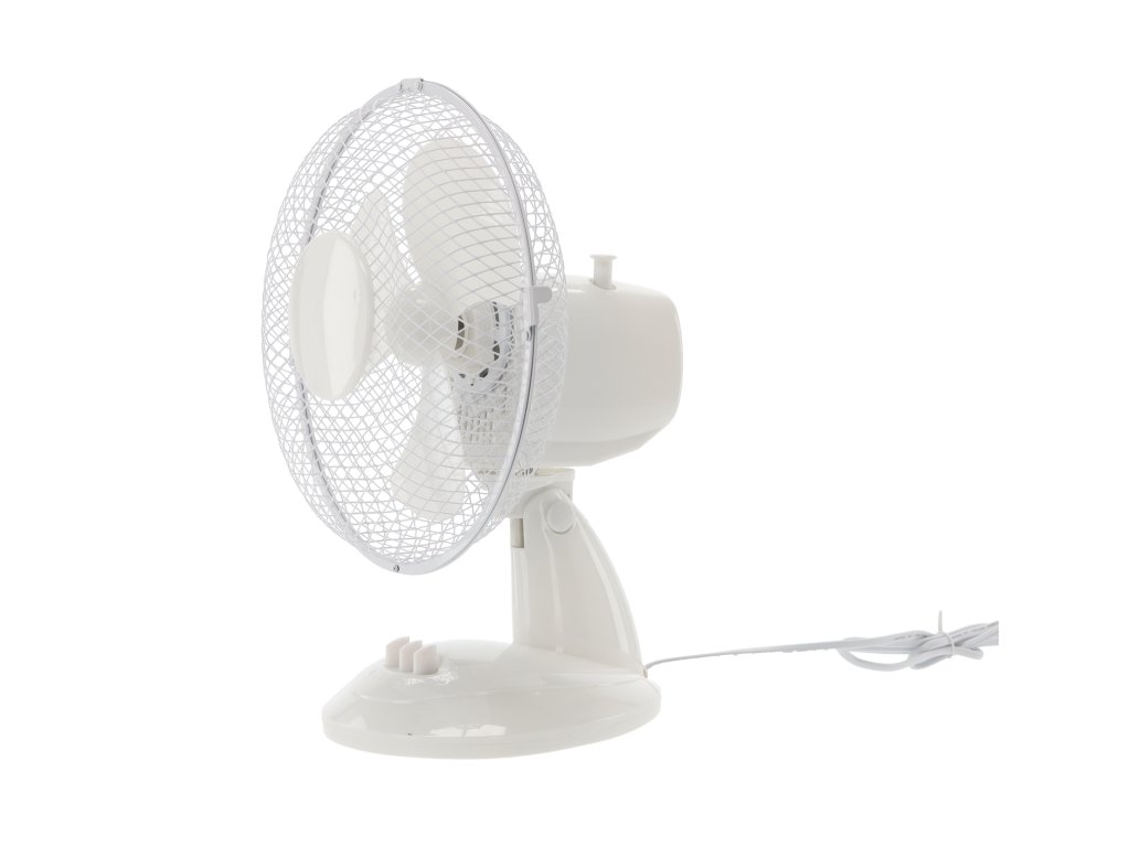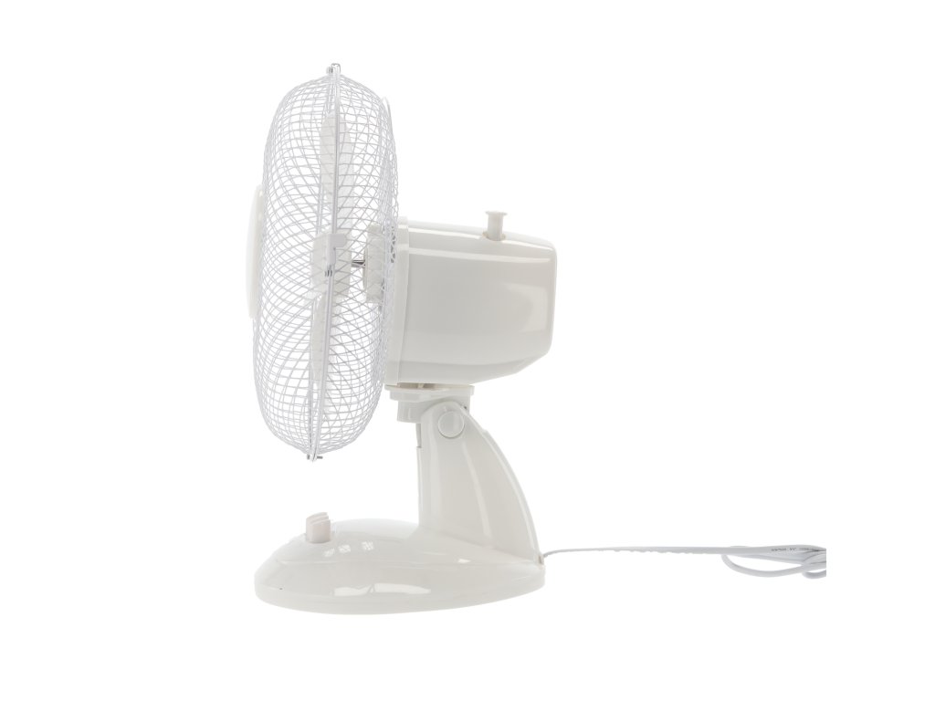 Stolový ventilátor ideálny na použitie v kancelárii, na stole alebo v menších miestnostiach, poskytujúci komfort používania vďaka funkcii regulácie rýchlosti a uhla náklonu.