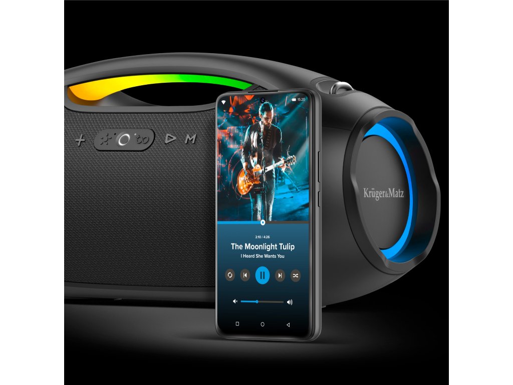 podsvietenie Funkcia viacerých prepojení Nabíjanie externých zariadení Režimy EQ: pre vnútorné a vonkajšie počúvanie Vstupy /výstupy: USB 2.0 port AUX vstup ( 3,5 mm jack) Nabíjací port USB typu C Prevádzková doba pri prehrávaní hudby: až 8 hodín (50% hlasitosť) Napájanie: 5 V / 2 A Batéria: 7,4 V; 5400 mAh Rozmery: 377 x 180 x 157 mm Hmotnosť: 2,8 kg Zahŕňa: USB-C kábel, 3,5 mm AUX kábel