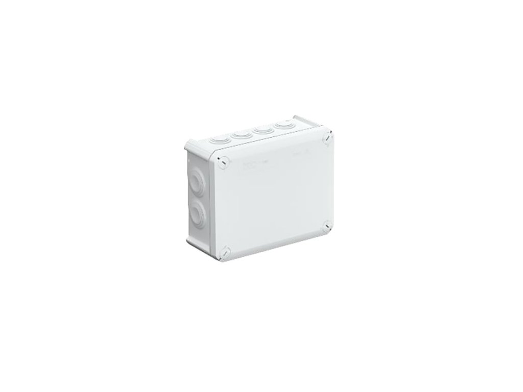 Vodotesná spojovacia škatuľka, prachotesná s hermeticky uzavieraným krytom. Určená na skrytie konektorov kamier, UTP transformátorov, galvanických oddeľovačov alebo samostatných prepäťových ochranných zariadení. Klapka montovaná na rýchlo demontovateľné zámky, navyše pripevnená aj šnúrkou na uľahčenie montáže. Vo vnútri sa zmestí aj napájací zdroj 12V v štandardných rozmeroch. Škatuľka je kompatibilná s držiakom U-BOX.