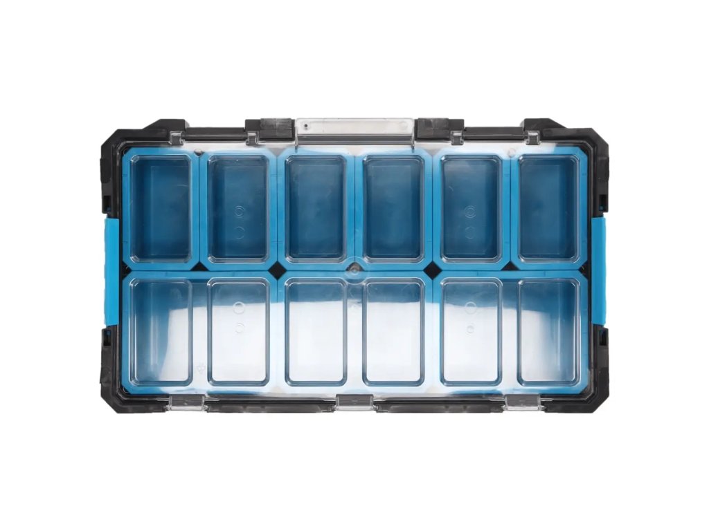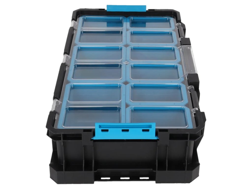 Kufrík s rozmermi 526x307x126 mm a objemom 14,3 litra. Obsahuje 9 organizérov vo forme vyberateľných zásobníkov,ktoré možno prispôsobiť individuálnym potrebám. Organizéry sú určené na ukladanie menšieho príslušenstva, ako sú skrutky, matice a skrutky.