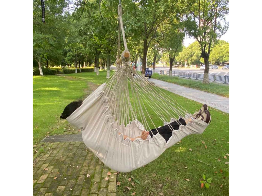 Brazílske kreslo s podnožkou Závesné lehátko hojdačka 130cm béžová