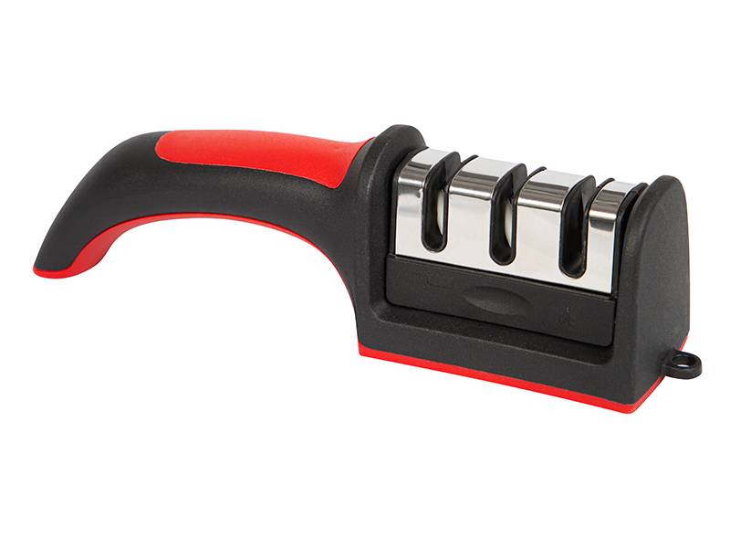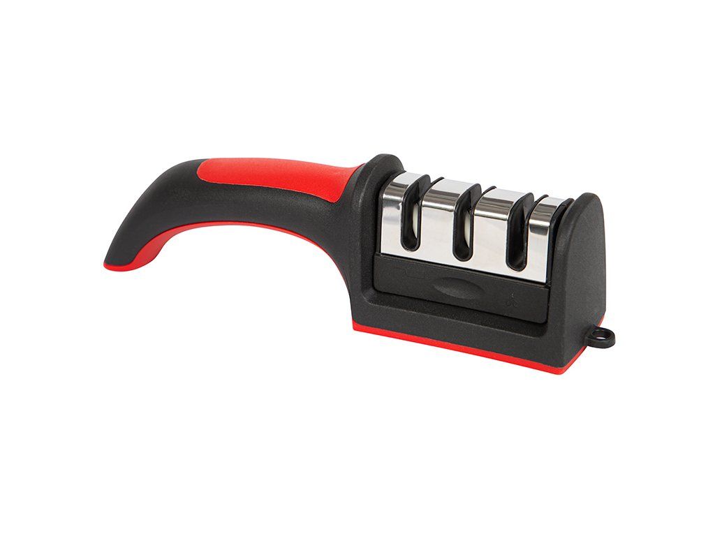 Brúsička nožov 44-593- je praktický pomocník do každej kuchyne, ktorý rýchlo obnoví ostrosť bežných kuchynských nožov. Trojfázový systém brúsenia zabezpečí postupné nabrúsenie, vyhladenie aj finálne doostrenie ostria, takže krájanie bude opäť presné, plynulé a pohodlné.