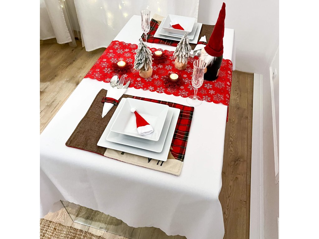 - Vzor: červený s bielymi a červenými vločkami