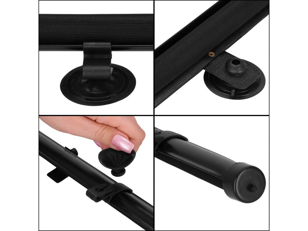 - Rolety upevňované na okno pomocou prísaviek - v sade 6 ks, 3 na každú roletu - dve na upevnenie zhora, jednu možno pripevniť v dolnej časti okna, aby sa umožnilo upevnenie k otvoru v pútku na suchý zips