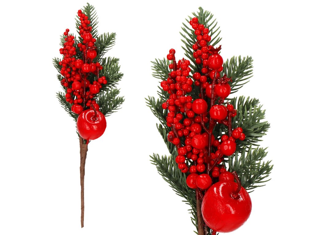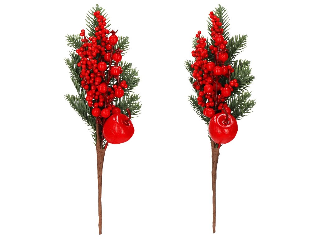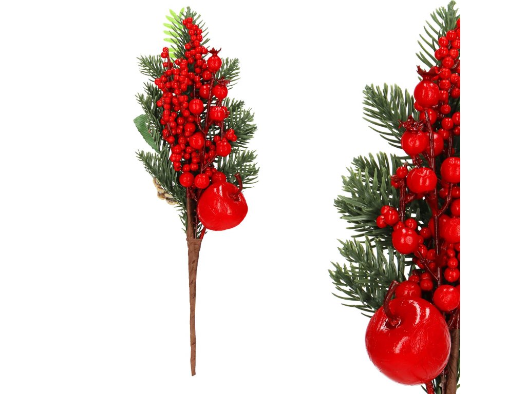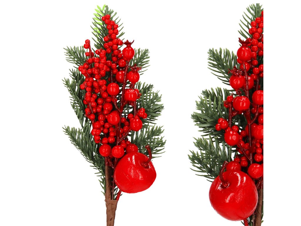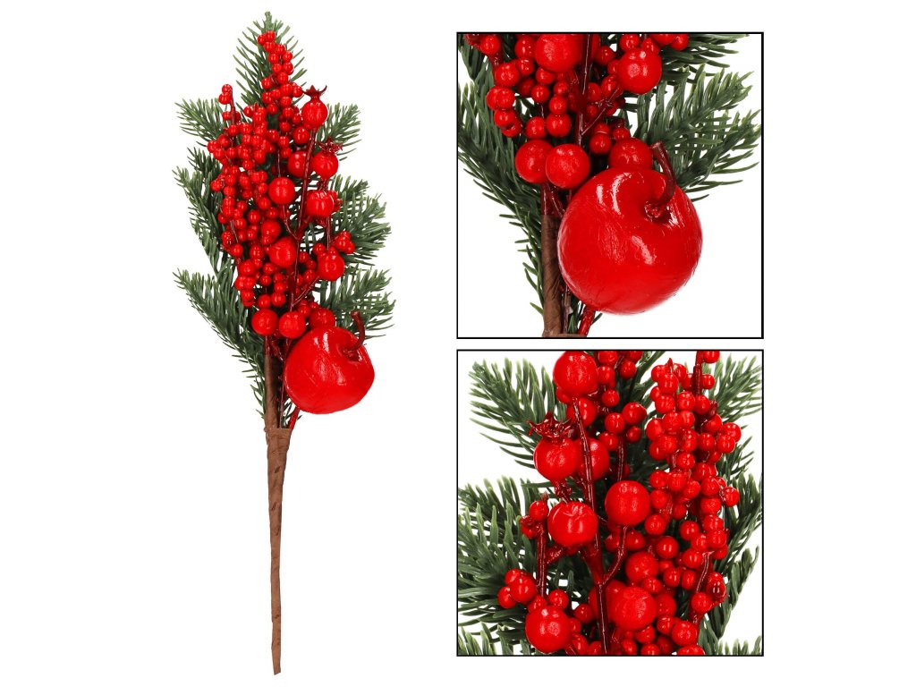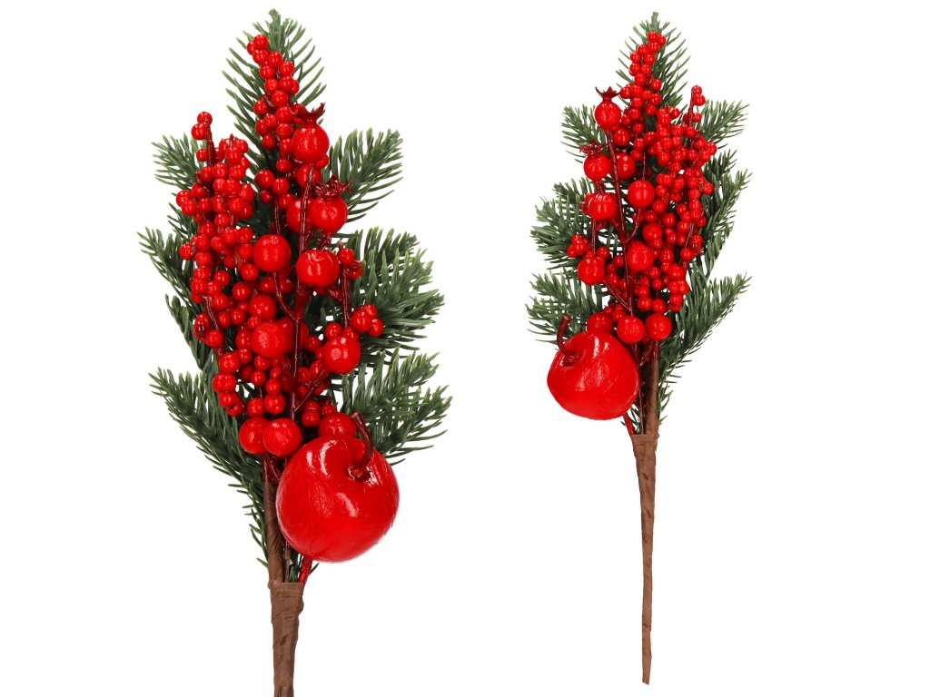 Prvky kytice: 3 vetvičky stromčeka, jablčko, vetvička hlohu, vetvička jarabiny