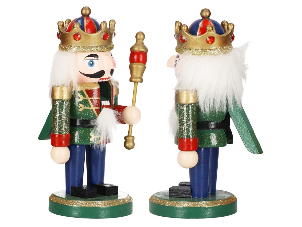 - Konstrukčné prvky: zlatá koruna, červeno-zelený odev, čierne topánky, tvár s očami a fúzmi, vystupujúci nos, šedivé vlasy a brada, otvor na orech v ústach otvorený zdvihnutím páčky zozadu, v ruke žezlo