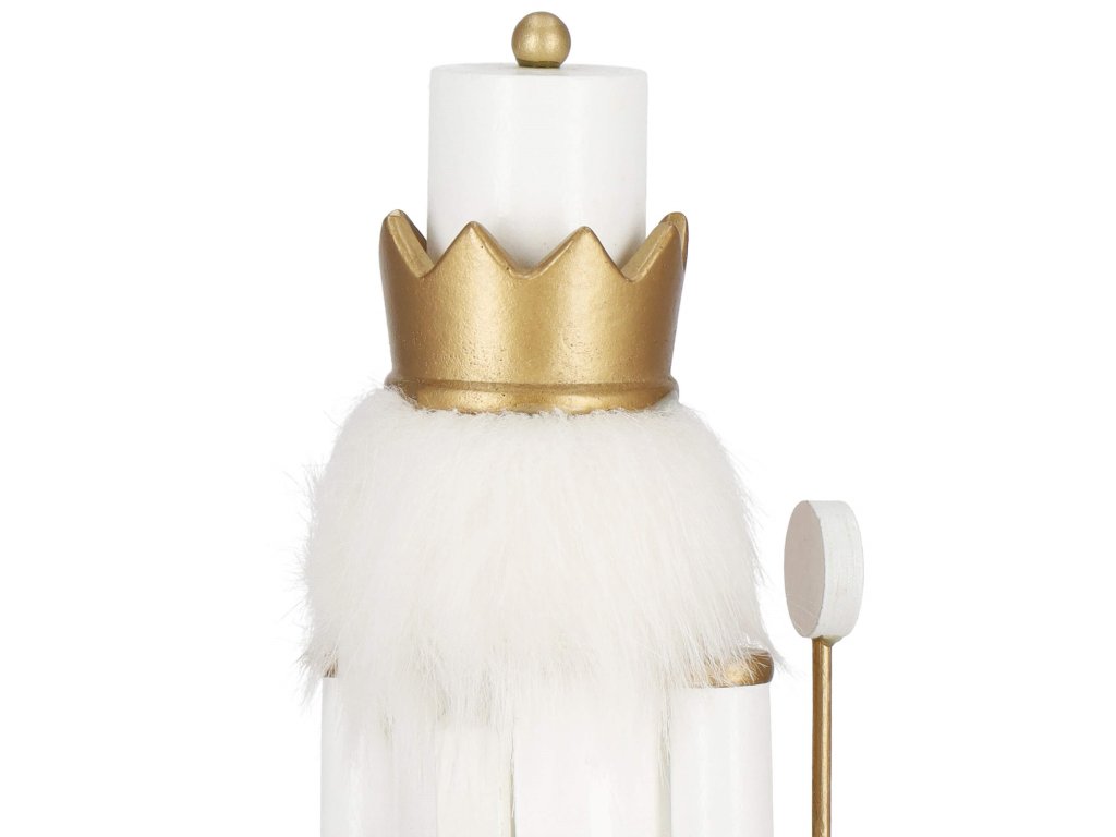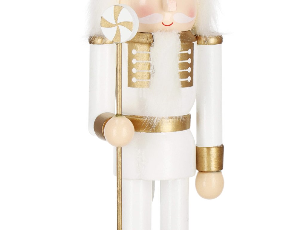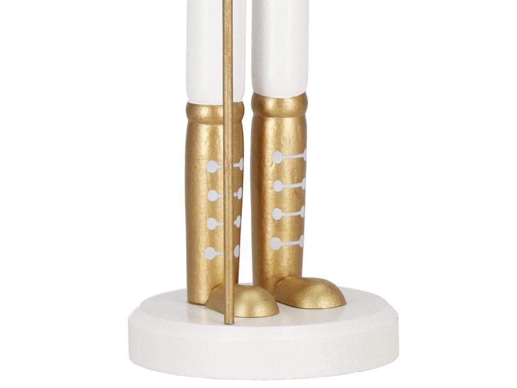 - Konstrukčné prvky: biela čiapka so zlatou korunou, bielo-zlatý odev, zlaté topánky, tvár s očami a fúzami, vyčnievajúci nos, sivé vlasy a brada, otvor na orech v ústach otváraný zdvihnutím páky zozadu, v ruke palica
