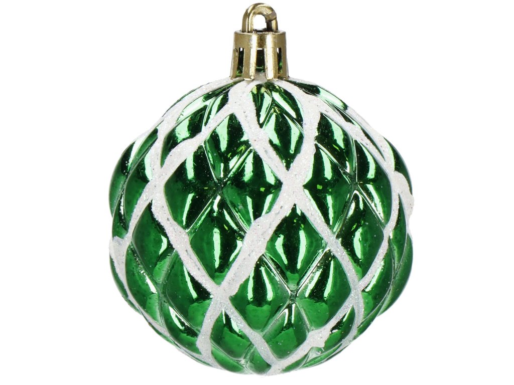 - 1x textúrovaná guľa - zelená + biele trblietanie - 6 cm