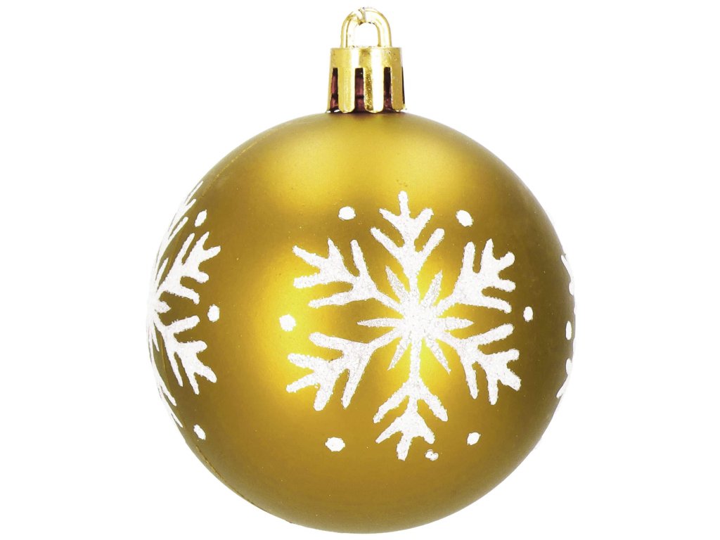 - 4x matná guľa - zlatá - s červenou trblietavou vločkou - 6 cm