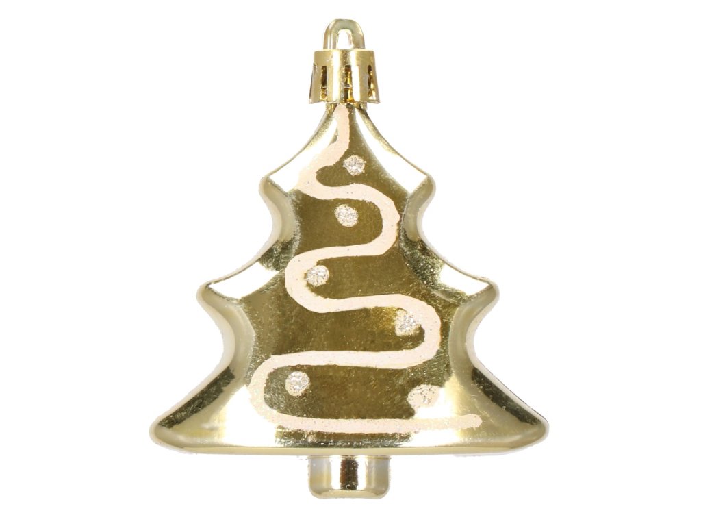 - 6x ozdoba "stromček" - zlatá matná + lesk + biely trbliet: 7 x 6,5 cm