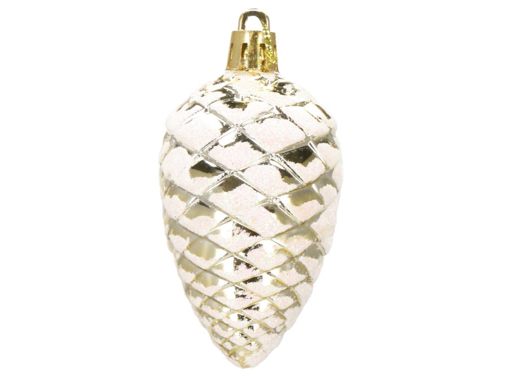 - 6x ozdoba "šiška" - zlatá + biely trbliet: 8 x 4 cm