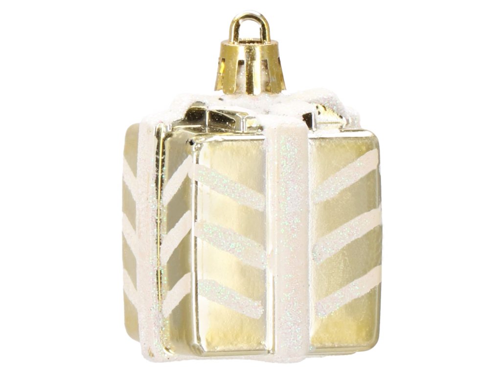 - 6x ozdoba "darček" - zlatá + biely trbliet: 4 x 3,5 cm ; celková výška: 6 cm