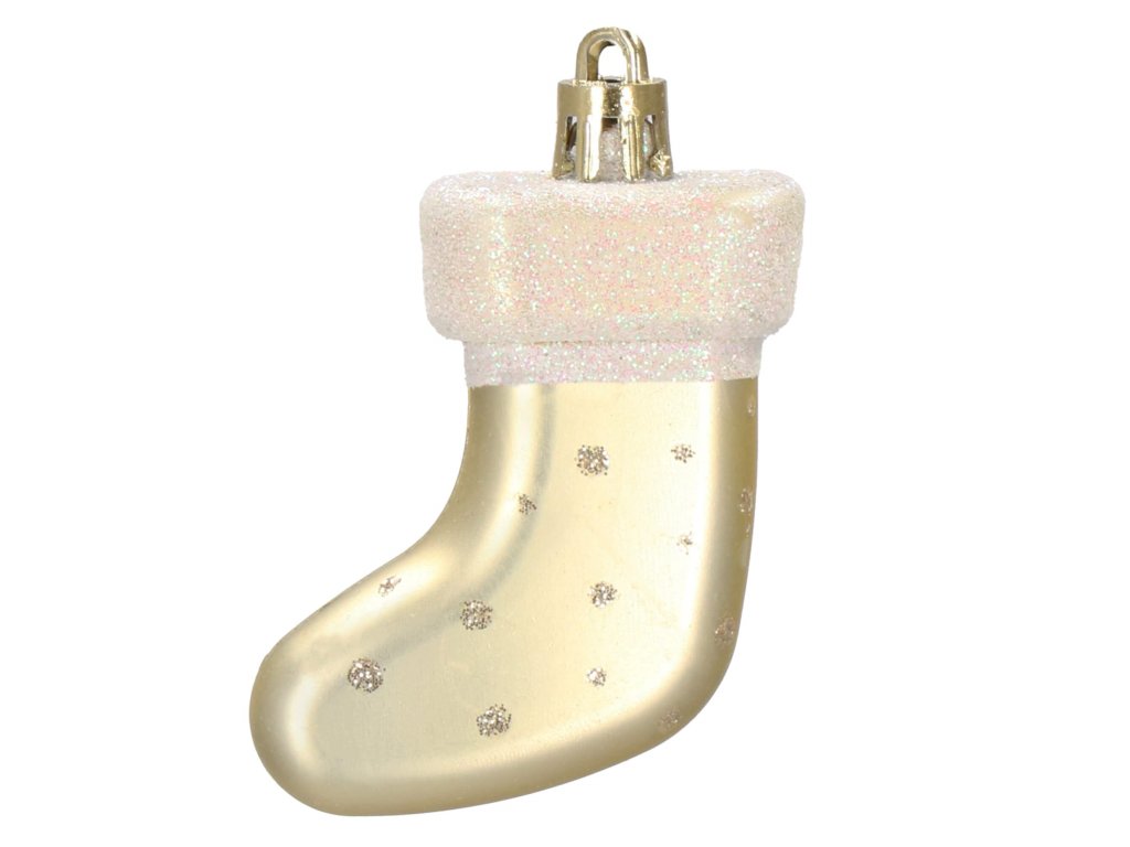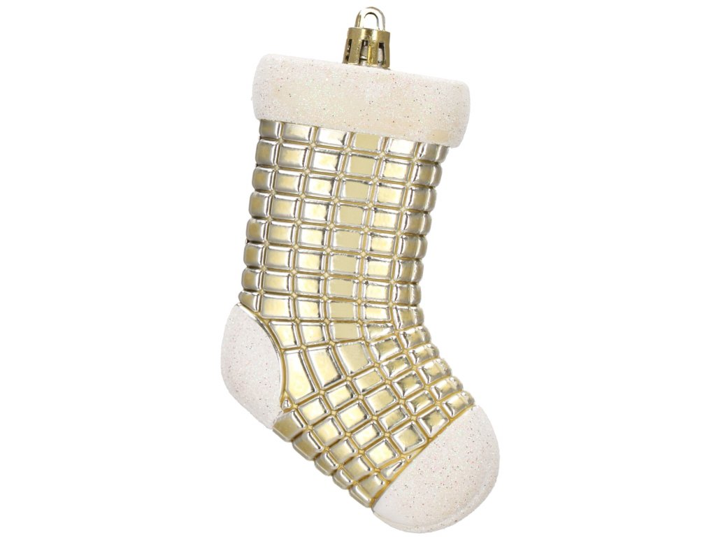 - 4x ozdoba "ponožka" - textúrovaná, zlatá + biely trbliet: 10 x 7 cm