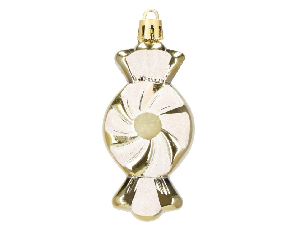 - 6x ozdoba "cukrík" - zlatá + biely trbliet: 9 x 4 cm