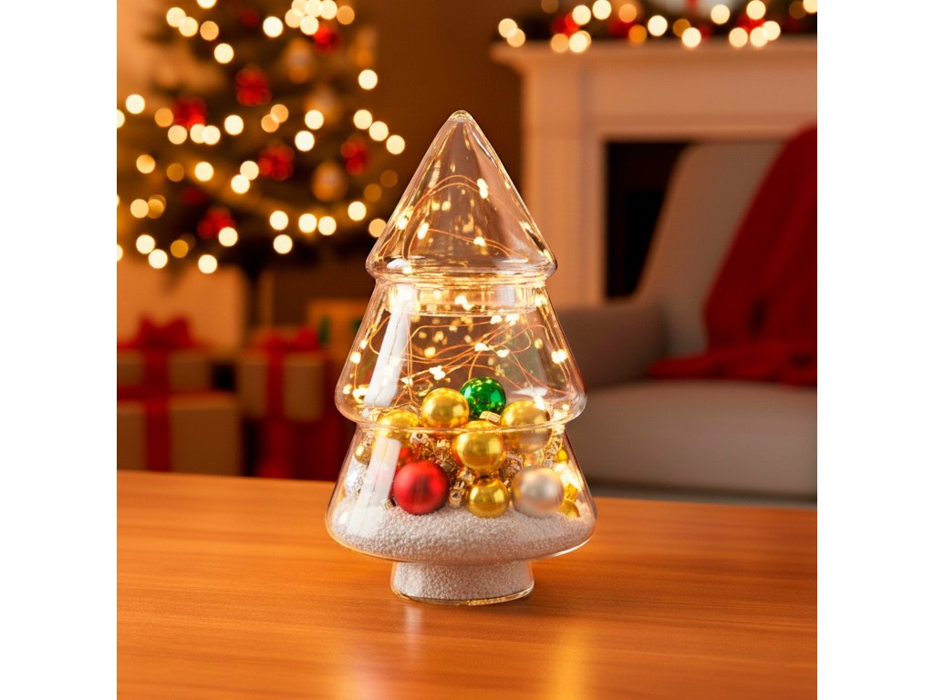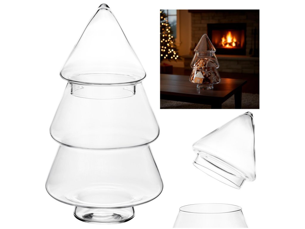 CA1458 SKLENENÁ NÁDOBA "VIANOČNÝ STROMČEK" 13 X 25 CM