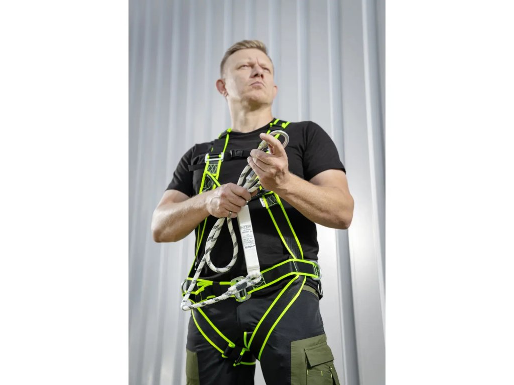 Bezpečnostný postroj a lano spĺňajú normu PN-E N 361.