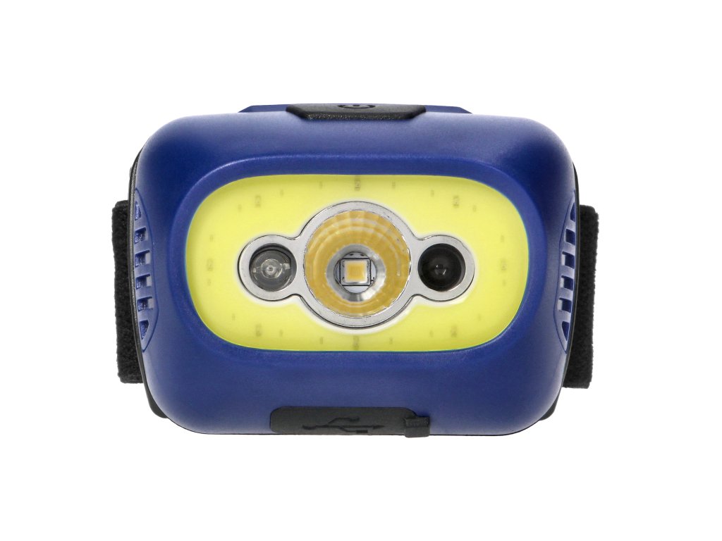 Čelovka LED COB s bezdotykovým ovládaním, modrá