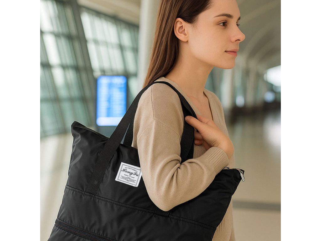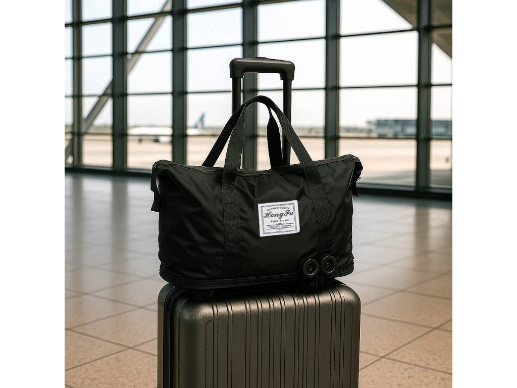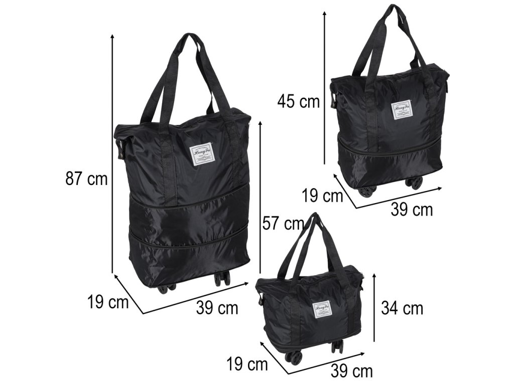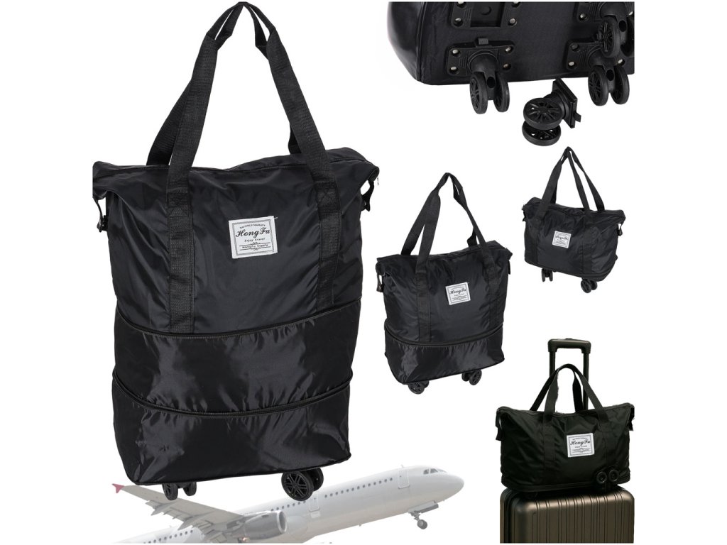 Cestovná taška na kolieskach skladacia priestranná 3 veľkosti čierna