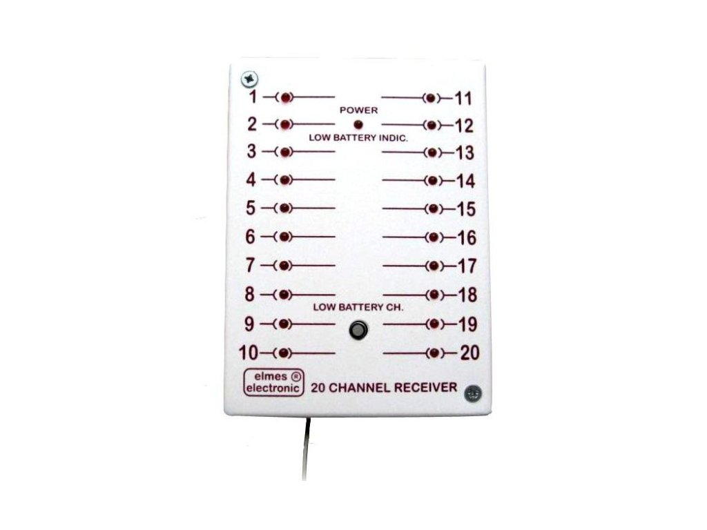 CH20 H je prijímač určený pre bezdrôtové poplašné systémy, kontrolu prístupu a systémov privolávania, v ktorých sa používa mnoho vysielačov Elmes s dynamickým meniteľným kódom KEELOQ® a vyžaduje sa ich identifikácia. Dvadsaťkanálový prijímač CH 20 H má 20 reléových výstupov typu NO alebo NC galvanicky oddelených a 20 LED diód na optickú signalizáciu zapnutia výstupu. Prijímač signalizuje vybitie batérie vo vysielačoch a otvorenie krytu (protisabotážna funkcia TAMPER), nedostatok spojenia s detektormi (PTX, GBX, CTX4H) a rádiovú sabotáž. Spolupracuje so všetkými vysielačmi a ovládačmi Elmes. Každý kanál môže pracovať v režime mono alebo bistabilnom. Osobitnou črtou prijímača CH 20H je možnosť zapnutia špeciálneho režimu práce, v ktorom zapnutie relé trvá až do vynulovania tlačidlom RESET - funkcia užitočná v systémoch privolávania. Ku každému výstupu prijímača možno priradiť ľubovoľný počet vysielačov, pričom ich celkový počet v systéme nesmie prekročiť 60. Viackanálové ovládače a vysielač RP501 vždy prepínajú nasledujúce, susedné kanály. Detektory PTX50, GBX, CTX pracujú v dvoch kanáloch: detekcia v ľubovoľnom kanále od 1 do 20, a protisabotáž v kanáli 20 priradenom automaticky.