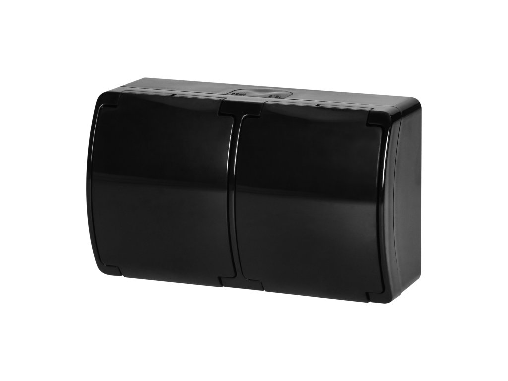 Čierna dvojitá zásuvka IP44 vonkajšia 2x2P+E
