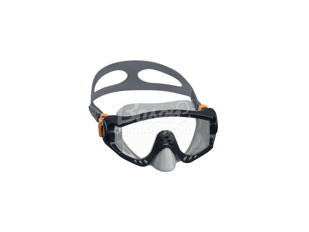 Špeciálne tvarovaný okulár poskytuje široké zorné pole. Pevné uchopenie zaručuje silikónový pásik namontovaný na maske.