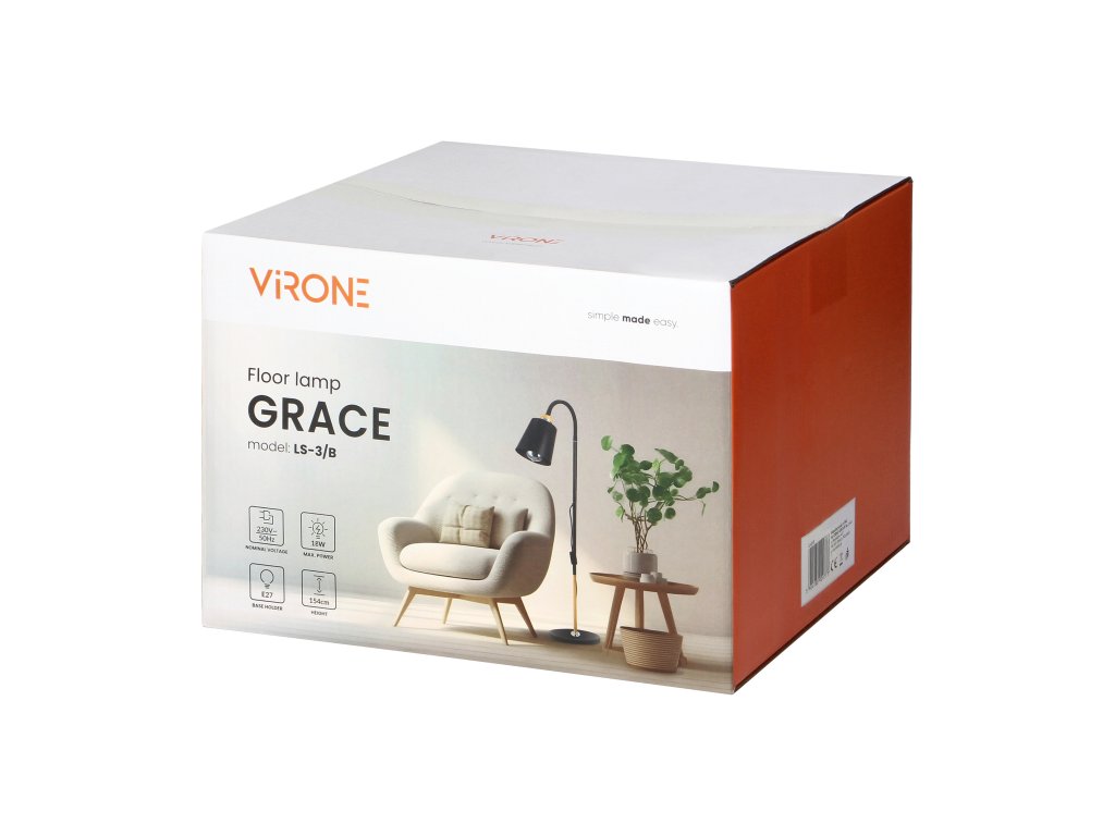 Čierna stojacia lampa 154 cm, E27, 18W max, sa stane ústredným bodom každého priestoru, v ktorom ju umiestnite. Je navrhnutá tak, aby poskytovala dostatok svetla pre čítanie, prácu alebo len pre vytvorenie príjemnej atmosféry. Lampa je kompatibilná s rôznymi druhmi žiaroviek, čo vám umožňuje prispôsobiť intenzitu a tón svetla podľa vašich predstáv.