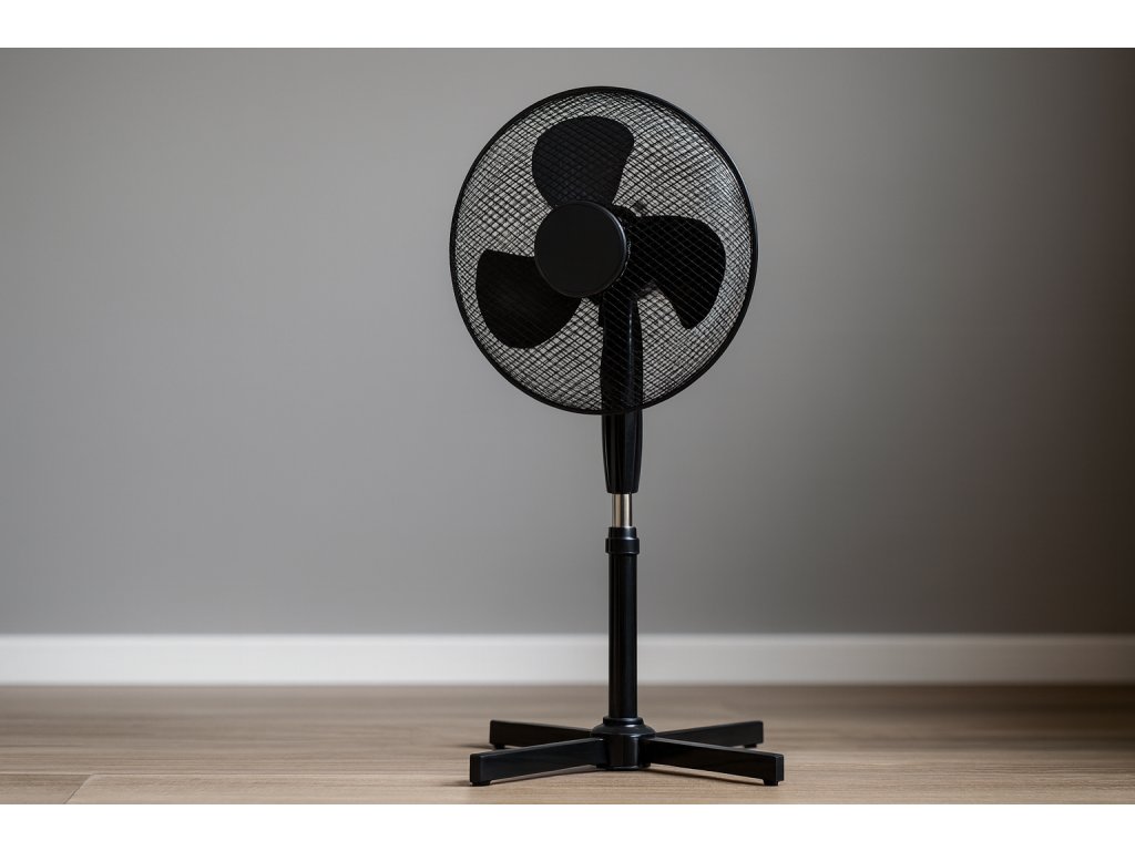Stojanový ventilátor s vysokým výkonom, zabezpečujúci efektívne chladenie v kanceláriách, obytných priestoroch a iných miestnostiach. Vybavený stabilným základom a reguláciou rýchlosti a uhla náklonu.