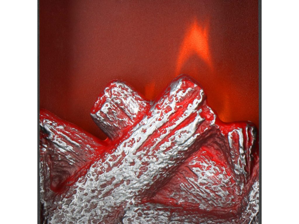 - Za priesvitným sklom sa nachádza imitácia horiacich drevených polien. Po zapnutí lampáša vzniká efekt žeravenia drevených polien a pohybujúcich sa "plameňov" nad nimi.