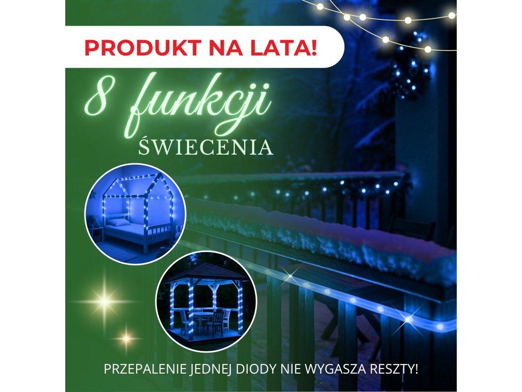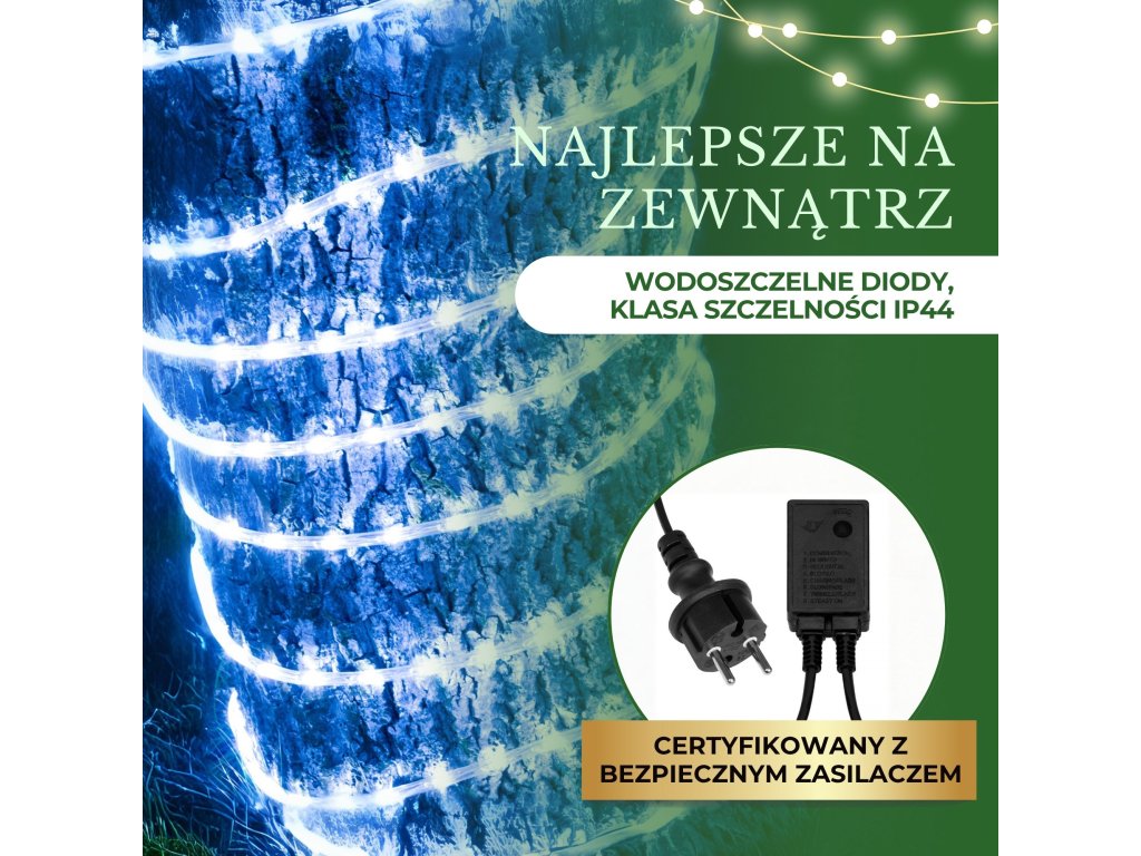 - Dĺžka sady: 21,5m (svietiaca časť 20m + kábel + zástrčka)