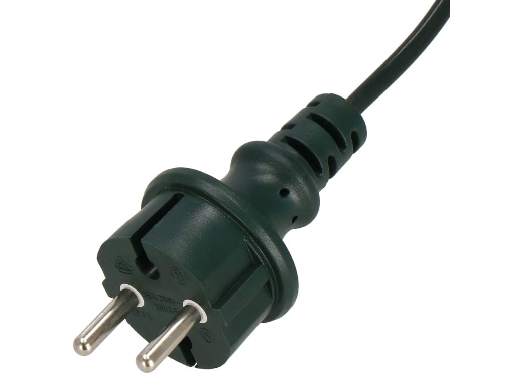 - Farba káblov a zástrčky: tmavozelená