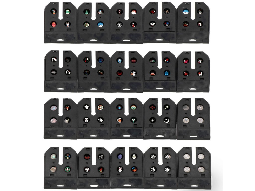 20 diapozitívov s rôznymi motívmi (dĺžka: okolo 7 cm, šírka: okolo 5 cm, hrúbka: okolo 0,5 cm)