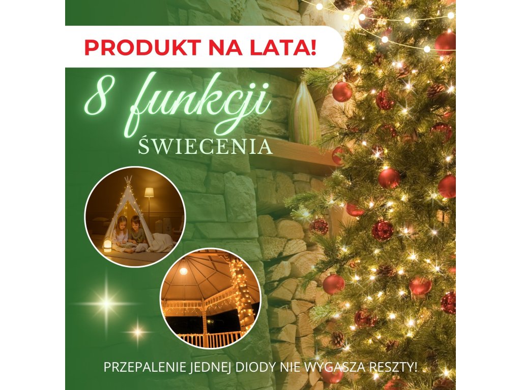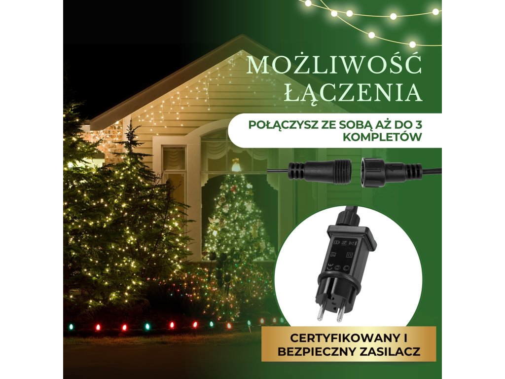 - Možnosť prepojenia až 3 sád svetelných reťazí