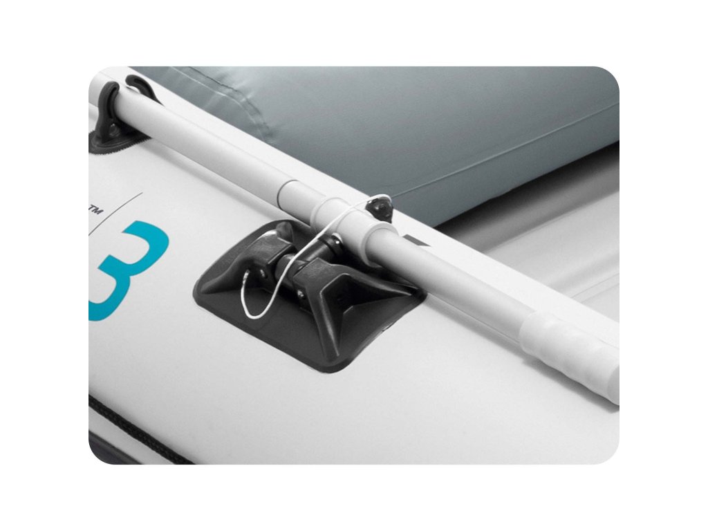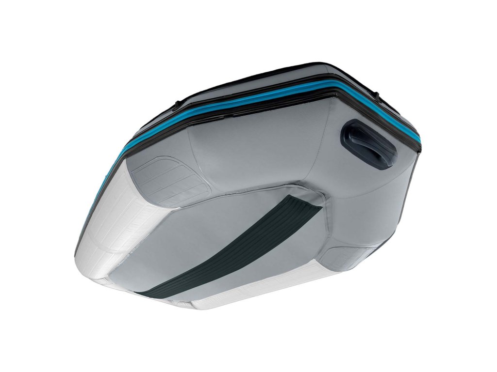 - Gumové spevnenie prednej časti efektívne chráni čln pred kontaktom tretieho stupňa so skalami či konármi, a systém 3 komôr umožňuje dosiahnuť breh aj v prípade poškodenia jednej z nich.