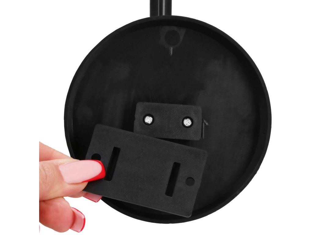 - V balení dva rozpínacie skrutky umožňujúce montáž lampy na stenu - natrvalo sa pripevňuje len malý prvok (5,8 x 3,5 cm), na ktorý sa môže lampa nasadiť a zložiť