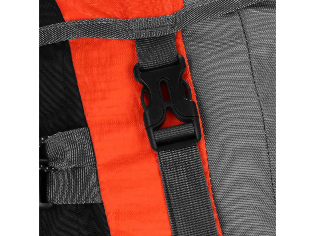 - Hlavná komora má komín, uzatváraná šnúrkou so sťahovačom (šnúrka čierno-žltá) + klapa na prackách na nastavovacích páskach, ostatné komory so zipsami. Spodná komora - dvojcestný zips, predná komora a na klape - jednosmerné zipsy.