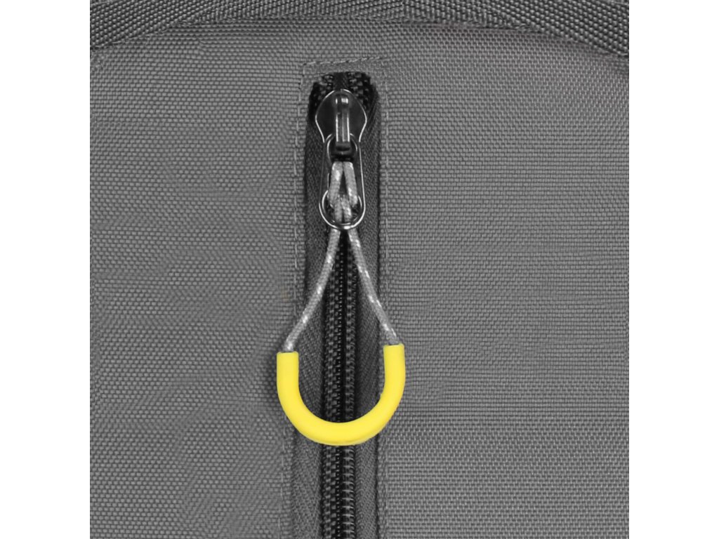 - Úchyty zipsov kovové, vybavené koncovkami z plastového prvku žltej farby.