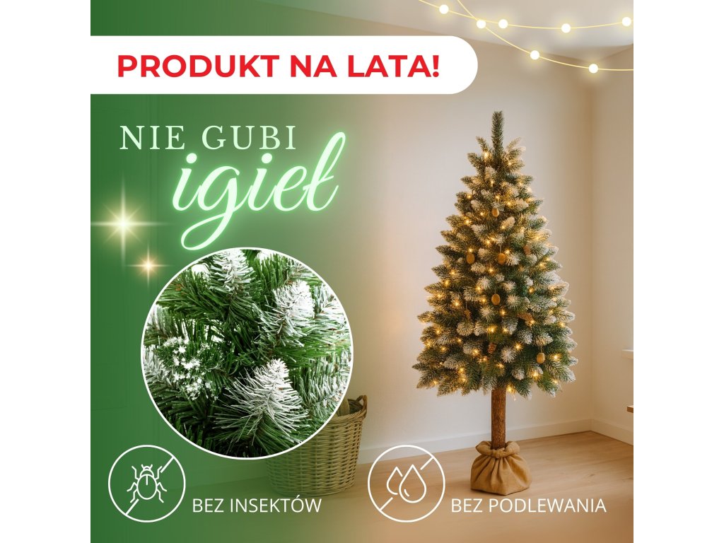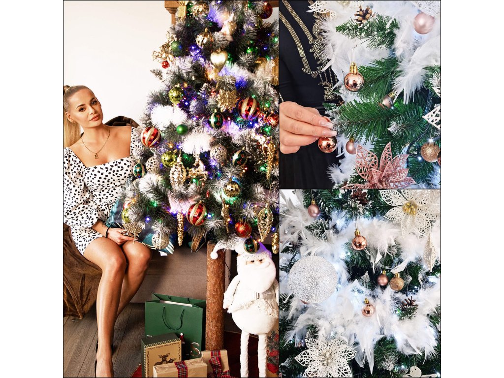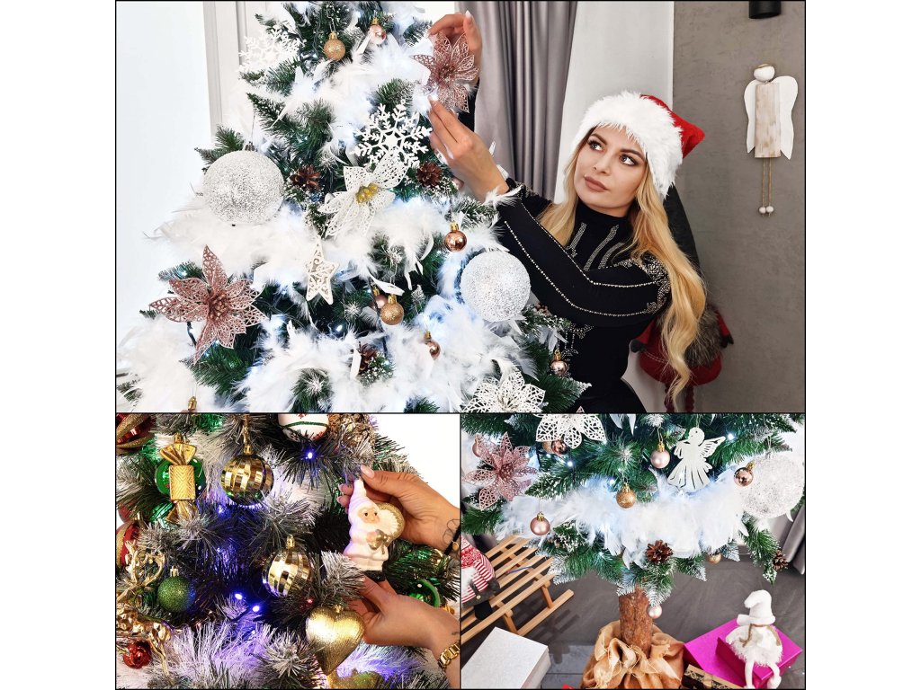 - Farba ihličia: zelená + konce vetví s dvomi druhmi zamrazenia - biela a strieborná trblietavá.