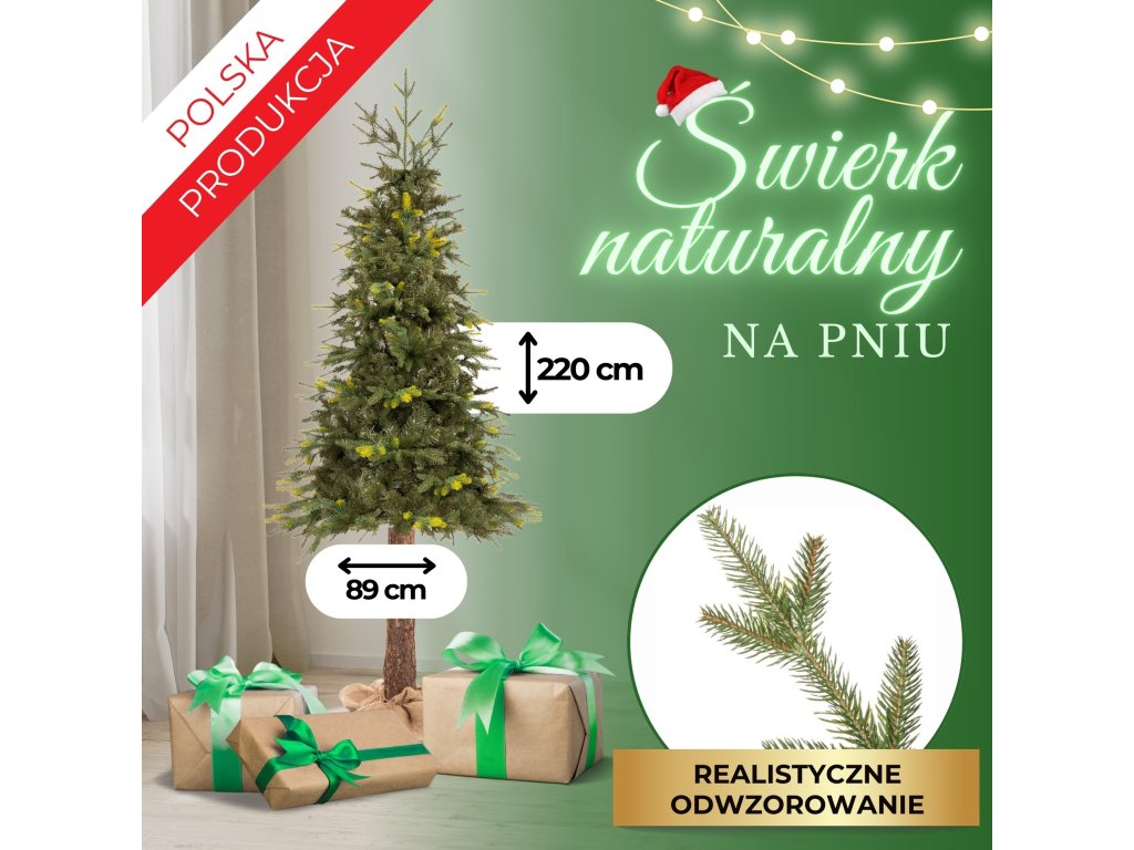 - Typ stromčeka: prírodný smrek na kmeni