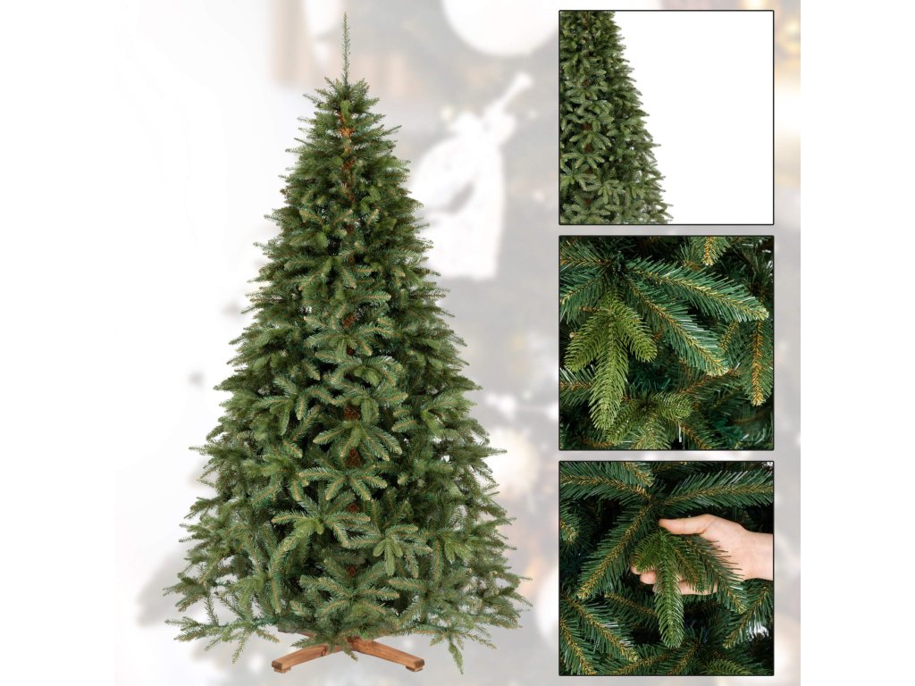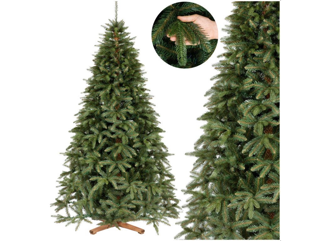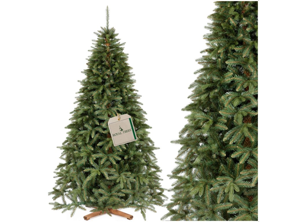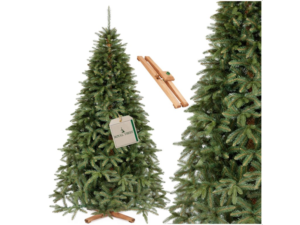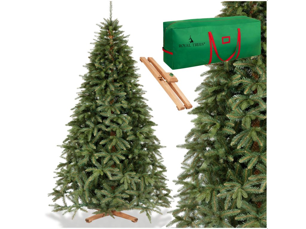 Základné údaje: Značka: Royal Trees® Typ stromčeka: Sibírsky smrek + PE EXCLUSIVE Celková výška (meraná od zeme): 240 cm Materiál ihličia: ekologická PVC, PE farba ihličia: zelená Typ stojana: so štyrmi ramenami Hnedé omotanie imitujúce kmeň stromčeka Koruna: Celková výška (meraná od zeme): 240 cm Maximálny rozsah (meraný v najširšom mieste): približne 142 cm Rozpätie merané vo výške 1 m: približne 92 cm Dĺžka špičky: 27 cm Počet úrovní: 21 + špička Počet vetiev: 116 Počet tipov: 1418 Šírka tipov (jednotlivé vetvičky): približne 3-6 cm Vzdialenosť od zeme po korunu: 24 cm Ukončenie vetiev: špic Počet častí, z ktorých sa skladá koruna: 3 Stojan: Typ: so štyrmi ramenami Materiál: drevo Farba: hnedá Výška (stred stojana): 7,5 cm (+ 3 cm plastová vložka) Výška nohy: 3,5 - 5 cm Dĺžka 1 nohy: 30 cm Šírka 1 nohy: 5 cm Vzdialenosť medzi nohami (meraná na koncoch): 43 cm Rozpätie stojana: 65 cm Obal: Materiál: 100% Polyester Farba: zelená, červená Prišité okienko na kartičku Jednosmerný zips Na obale sa nachádza logo Royal Trees® Rozmery obalu: Výška: 40 cm Dĺžka: 125 cm Šírka: 50 cm Okná: 10 x 7 cm Horná rukoväť: Šírka: 2,5 cm Dĺžka slučky (od povrchu obalu po vrchol slučky): približne 42 cm Celková dĺžka rukoväti: približne 84 cm Bočná rukoväť: Šírka: 2,5 cm Celková dĺžka rukoväti: 20 cm Ďalšie informácie: Rozmery balenia: 120 x 40 x 40 cm Produkt na vlastnú montáž Dvojfarebná fólia: zelená a hnedá imitujúca pravú vetvičku Ultra realistický vzhľad Dôležité: pre dosiahnutie uspokojivého efektu je potrebné vetvy rozložiť a tvarovať s náležitou starostlivosťou. Tolerancia rozmerov je +- 2%. Konštrukcia stromčeku je ťažká/presne prevedená, Vetvičky sú hrubé a masité Videonávod v podobe QR kódu na obaleDodatočné parametre