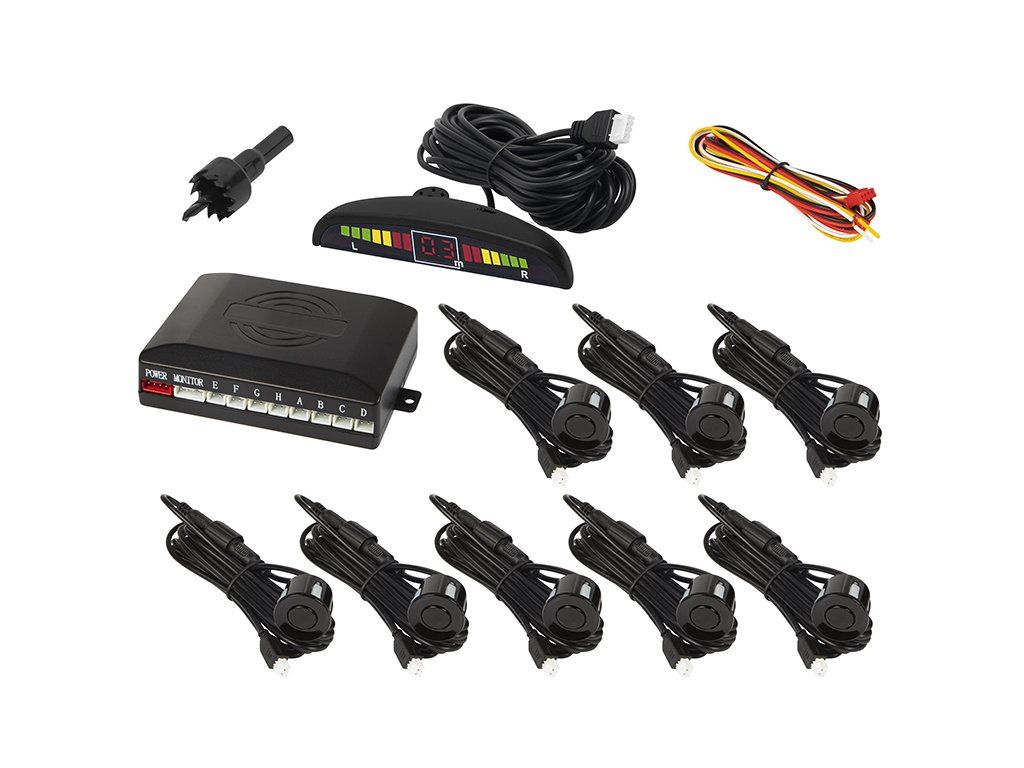 Sada je určená na montáž do osobných aj úžitkových vozidiel. Súčasťou balenia je potrebné príslušenstvo vrátane vrtáka s pílou na otvory, čo uľahčuje inštaláciu snímačov s priemerom 22 mm. Prehľadné zapojenie a kompletná kabeláž pomáhajú zjednodušiť montáž systému.