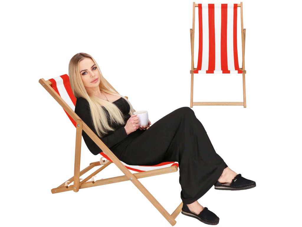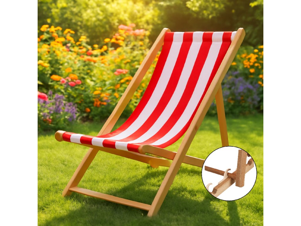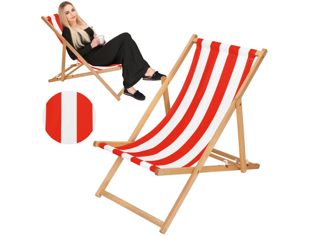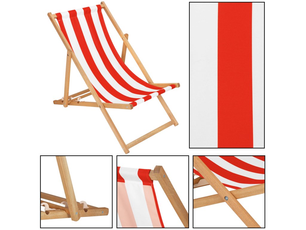 DC0006WRS DREVENÉ SKLADACIE LEHÁTKO IMPREGNOVANÉ BIELO ČERVENÉ PRUHY