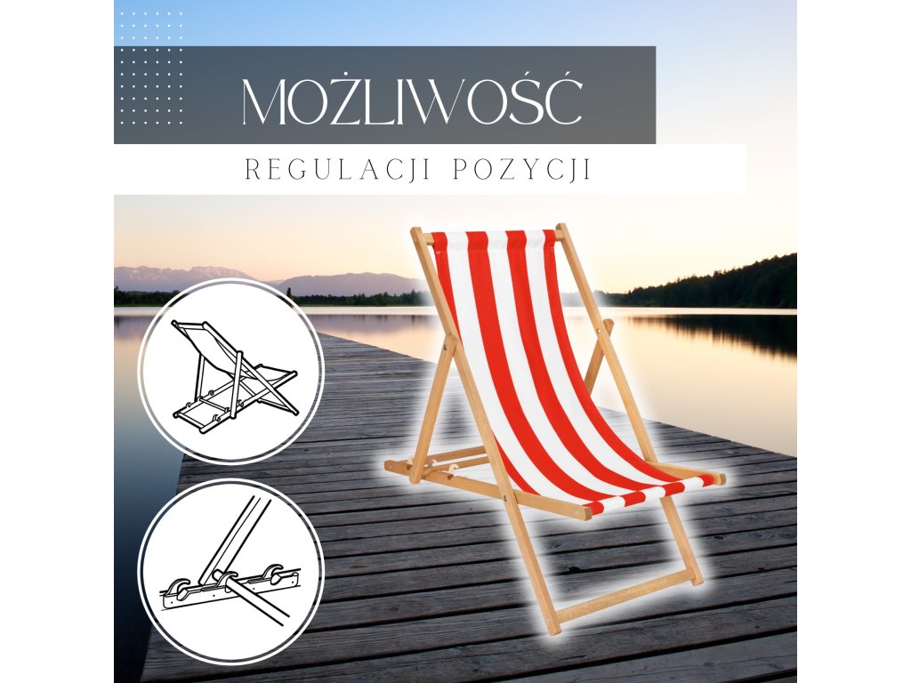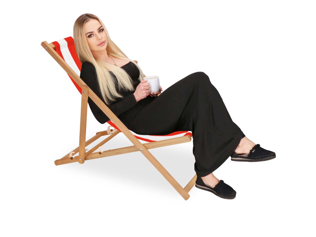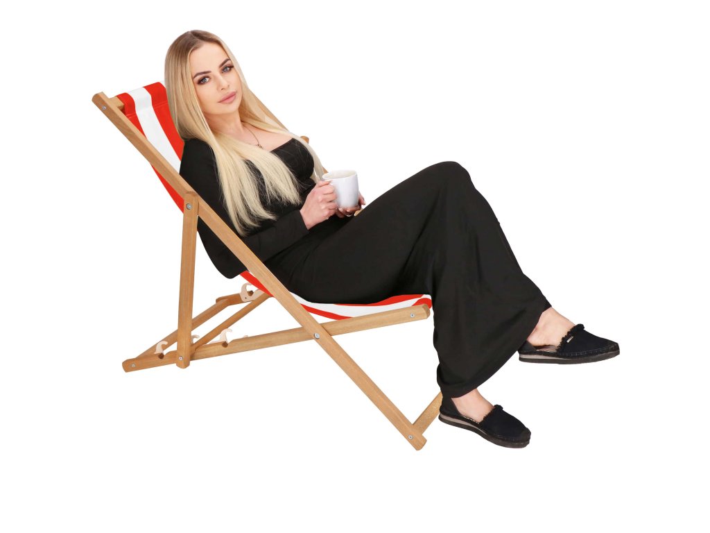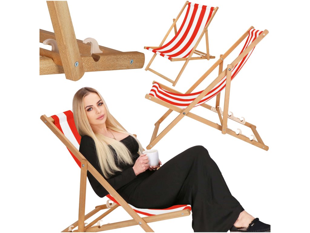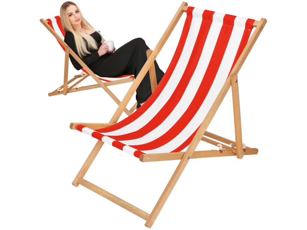 DC0006WRS DREVENÉ SKLADACIE LEHÁTKO IMPREGNOVANÉ BIELO ČERVENÉ PRUHY