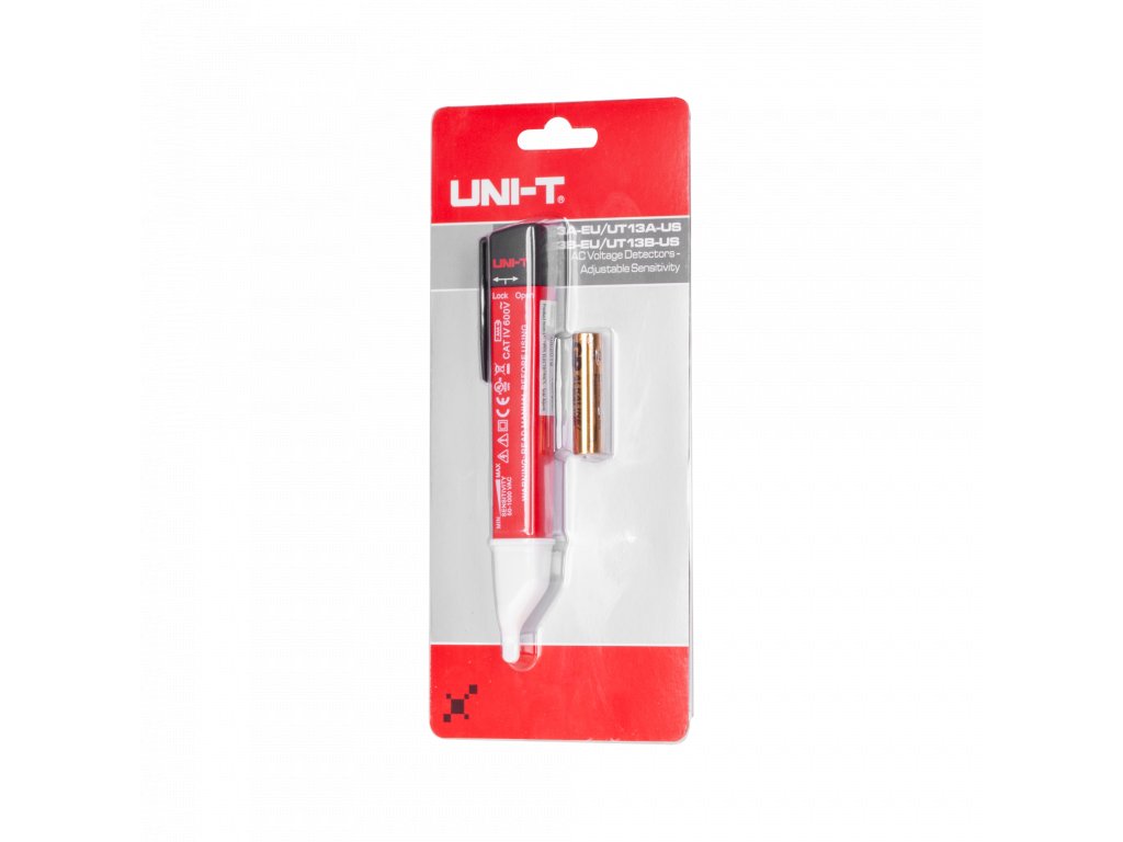 UT11B je kompaktný detektor, ktorý veľmi rýchlo a jednoducho detekuje striedavé napätie v rozsahu 50V~600VAC bez kontaktu s kovovými súčasťami. Keď sa hrot detektora dostane do kontaktu s izoláciou kábla alebo krytom zásuvky, zariadenie signalizuje prítomnosť napätia hlasovým signálom a červeným svetlom na hrote.