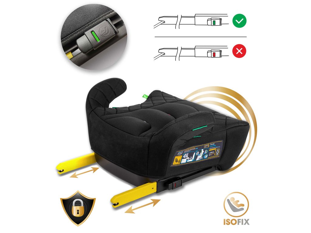 Upevnenie pomocou Isofix a autopásov. Riešenie vhodné pre väčšinu modelov áut. Systém Isofix poskytuje dodatočnú stabilizáciu a bezpodmienečnú bezpečnosť počas jazdy.