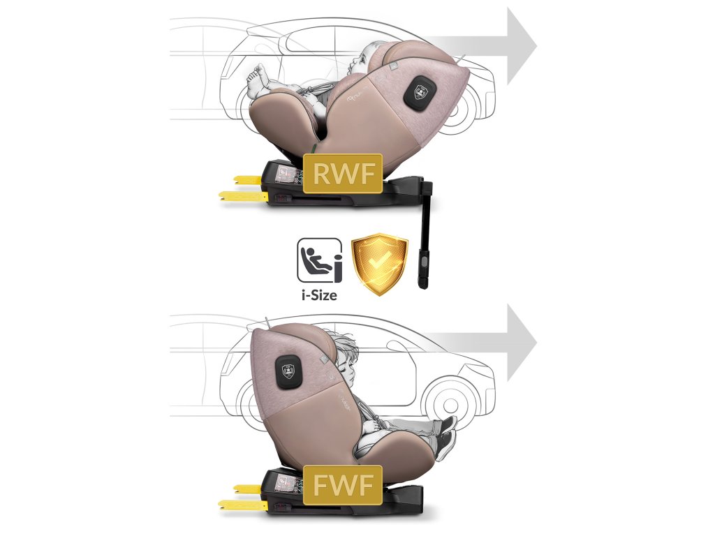 - montáž v pozícii proti smeru jazdy (RWF) určená pre deti s výškou 40-105 cm (zodpovedá veku od narodenia do cca 4 rokov),