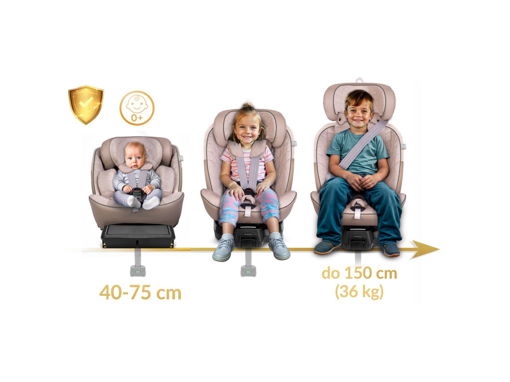 Autosedačka Aero bola navrhnutá tak, aby sprevádzala dieťa na cestách od prvých rokov života až do chvíle, keď sa bude môcť bezpečne presedlať na autosedačku. Je vhodná pre vekové skupiny: