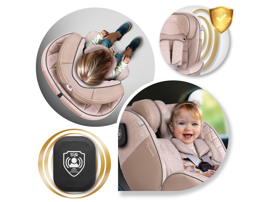 Moderná technológia umožňuje voľne otáčať autosedačkou, čo uľahčuje prístup k dieťaťu z boku, aby ste ho ľahko a rýchlo vybrali z autosedačky.
