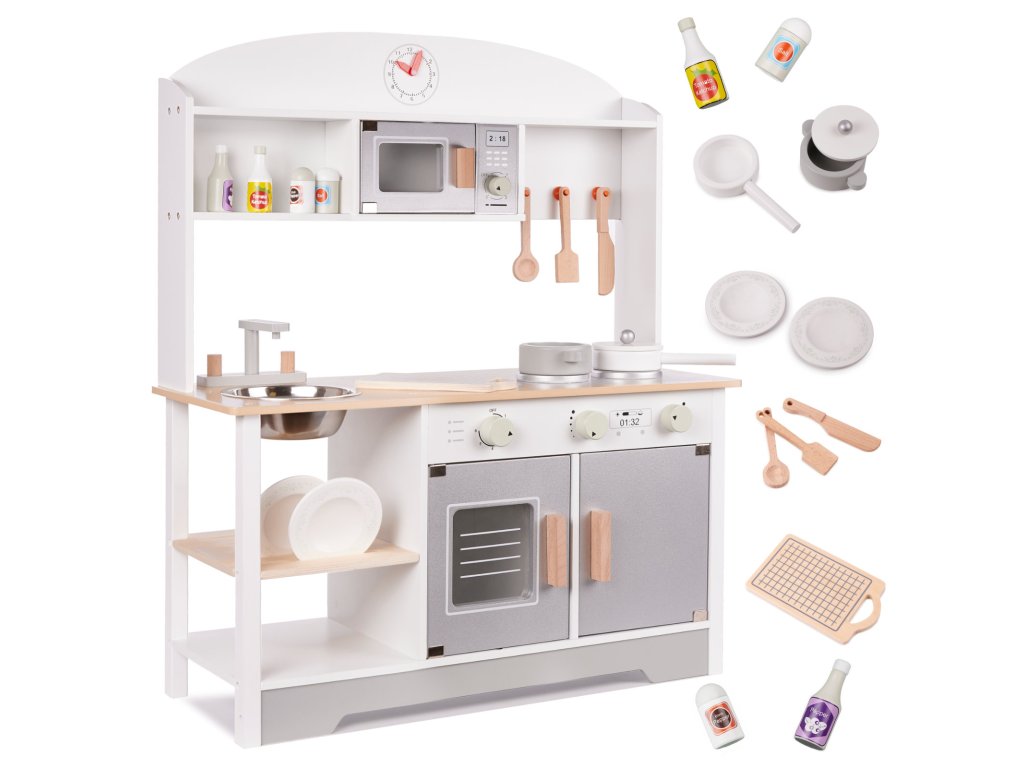 Detská drevená kuchynka MDF MODERN CLASSIC+ príslušenstvo