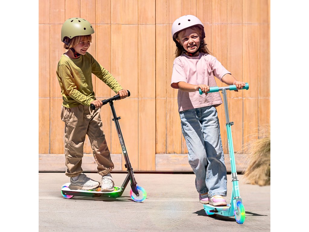Kolobežka Fun Wheels Light je dostupná v dvoch farebných variantoch, vďaka čomu si každé dieťa môže vybrať model prispôsobený svojmu štýlu a osobnosti. Farebná forma robí kolobežku nielen prostriedkom zábavy, ale aj obľúbeným gadgetom, s ktorým dieťa rado strávi čas vonku.